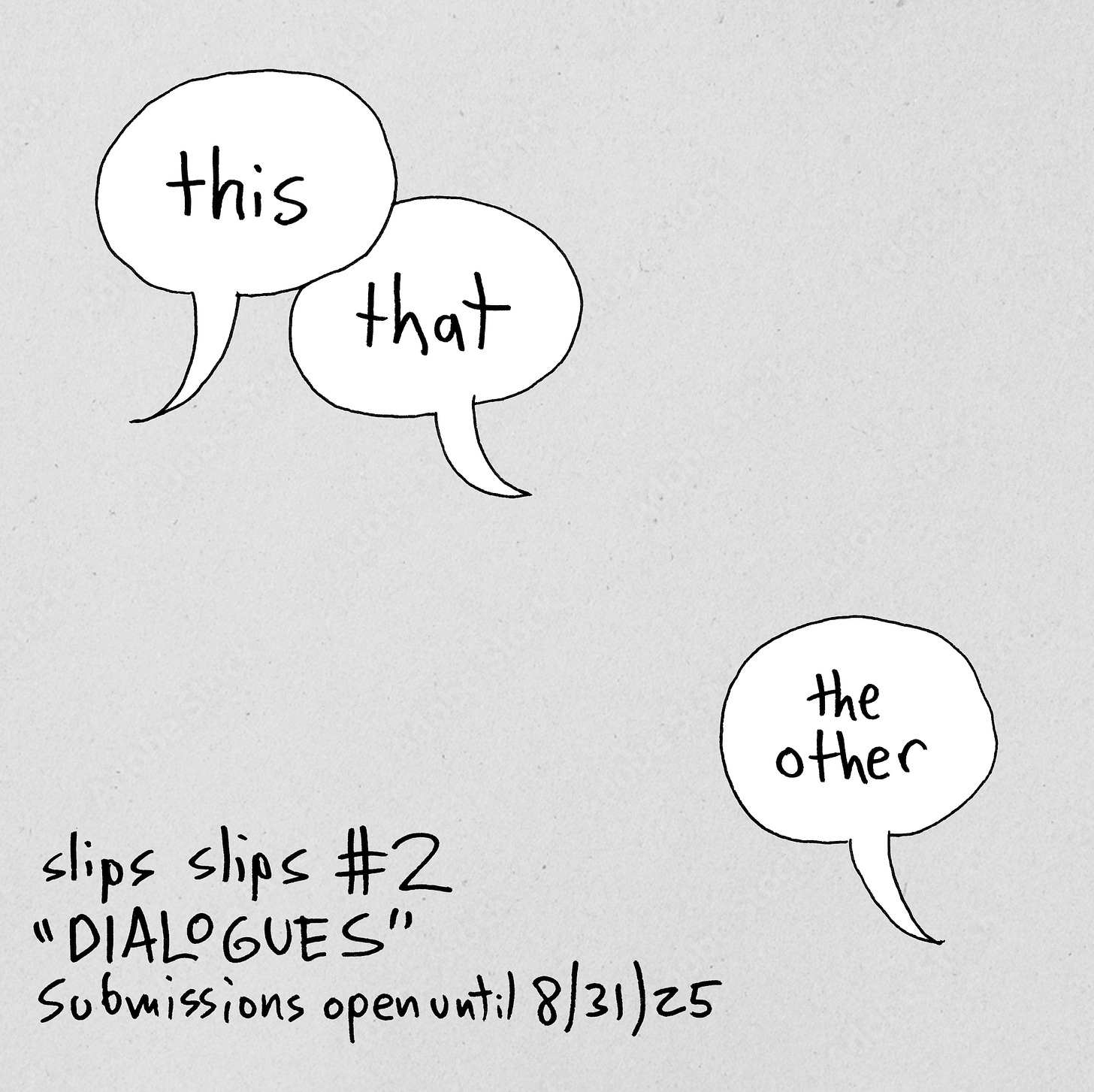 As I’m sure you can tell from the images, the deadline for issue #2 - “Dialogues!” - is August 31. Send something our way, why don’t you?